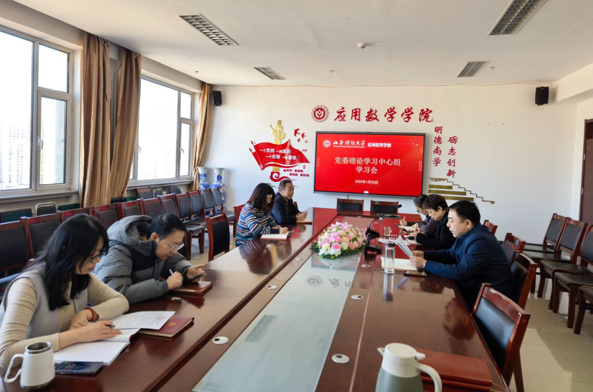 1月20日上午,应用数学学院党委理论学习中心组在学院会议室举行2026年第一次集中学习会,深入学习了习近平总书记在二十届中央纪委五次全会上发表的重要讲话精神和2026年全国教育工作会议精神。学院党委书记秦春主持会议,学院党委理论学习中心组全体成员参加学习。